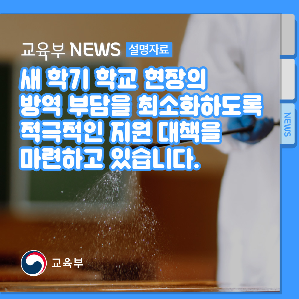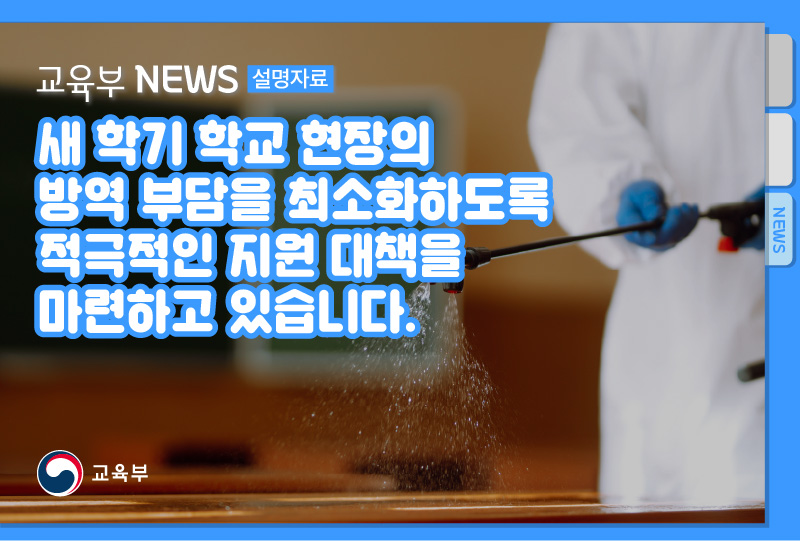 새 학기 학교 현장의 방역 부담을 최소화하도록 적극적인 지원 대책을 마련하고 있습니다. 본문