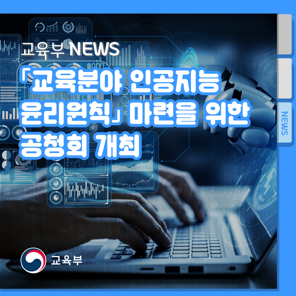 이번 공청회는 교육부가 지난 1월 27일(목)에 발표한 「교육분야 인공지능 윤리원칙」 시안을 토대로, 학생·학부모·교원 등 교육당사자, 교육기술(에듀테크) 산업체 관계자 및 전문가 등의 다양한 의견을 수렴하고 발전적 논의를 위해 실시된다.