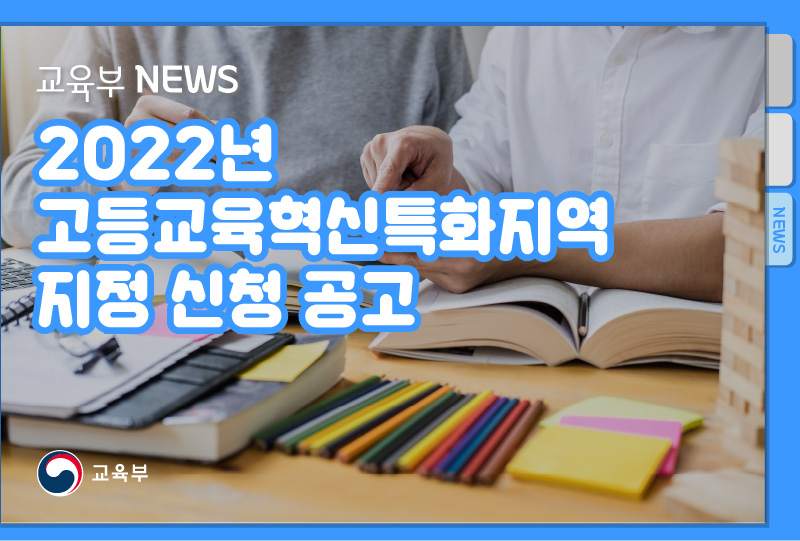 ※ 특화지역 지정 신청 기간: 2022. 2. 16.(수) ~ 5. 27.(금) / 공고문은 교육부 누리집(www.moe.go.kr) ’교육부 소식-공지사항-사업공고‘에서 확인할 수 있음