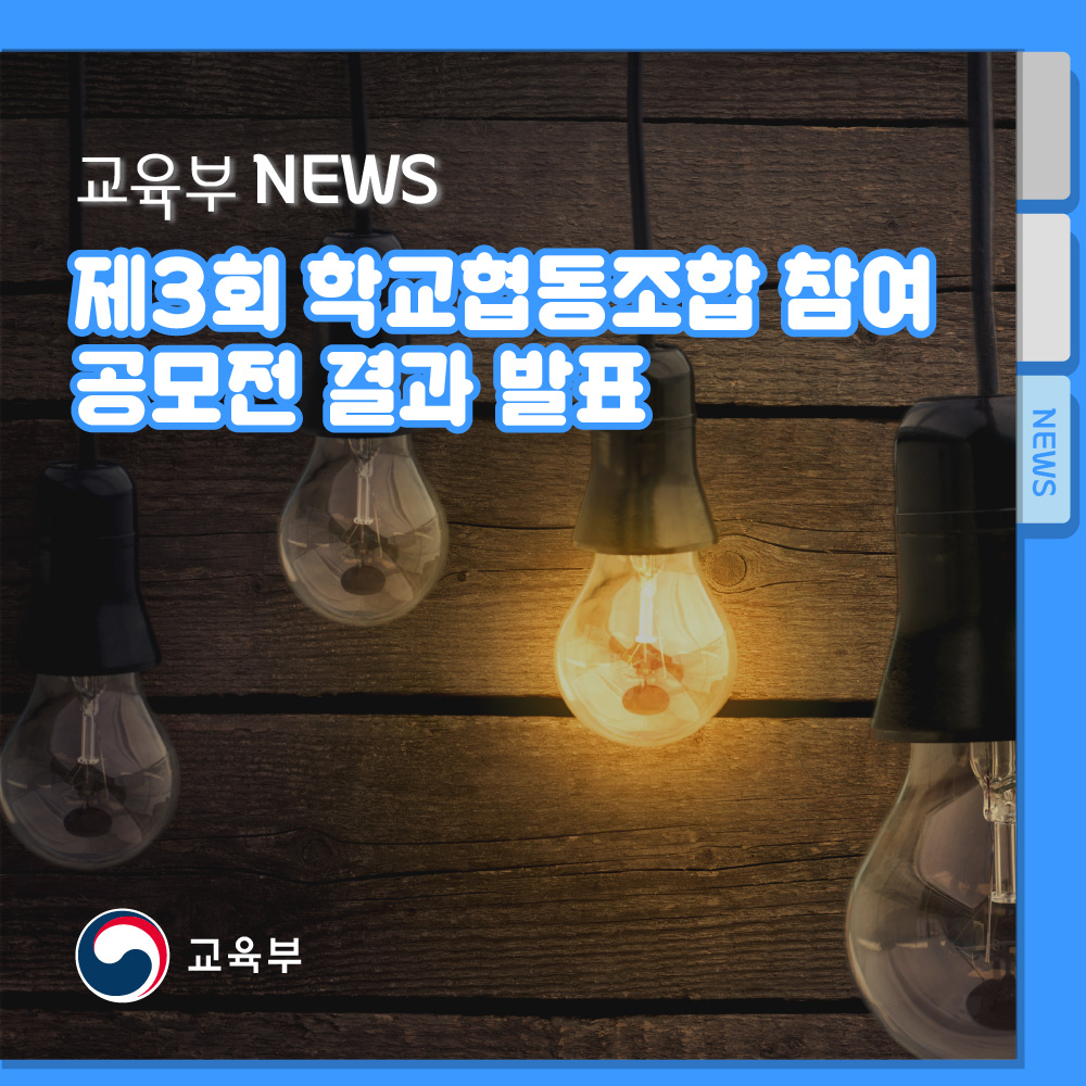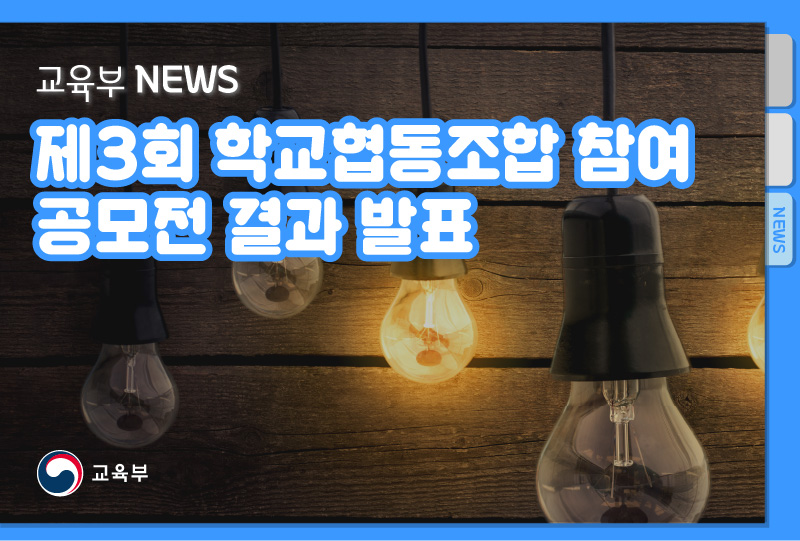 □ 교육부(부총리 겸 교육부장관 유은혜)와 국가평생교육진흥원(원장 강대중)은 「제3회 학교협동조합 참여 공모전」결과를 발표하였다.
