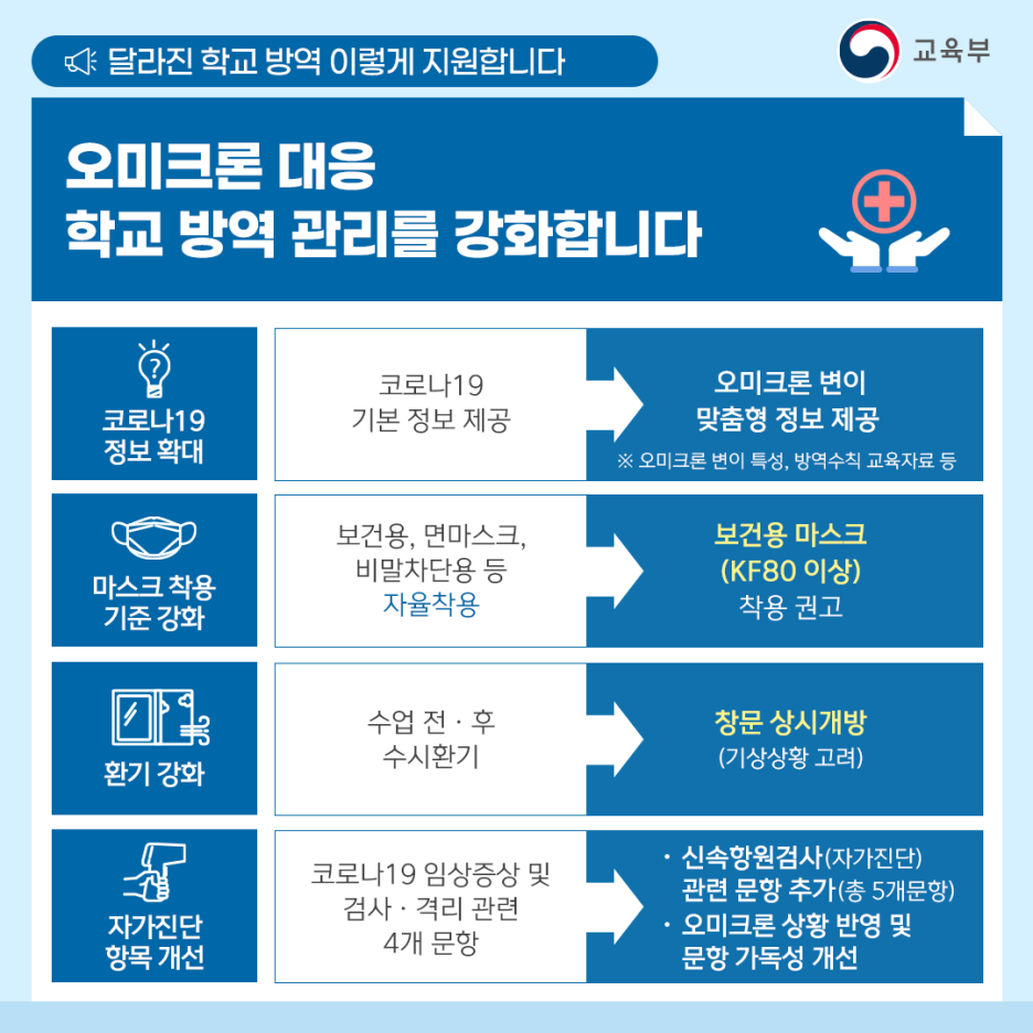 새 학기 방역 및 학사의 모든 것 ! 궁금증을 풀어드립니다. - 학생·학부모편 (0) | 2022.02.28 |