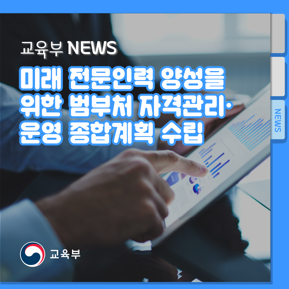 “교육부는 자격정책 및 제도 총괄부처로서 관련 부처와 민간과 협력하여 거대한 사회‧경제 변화와 연계한 자격 신설 및 제도 개선이 이뤄질 수 있도록 노력하겠다.”라고 밝혔다.