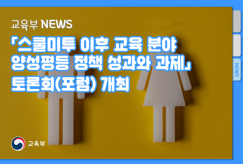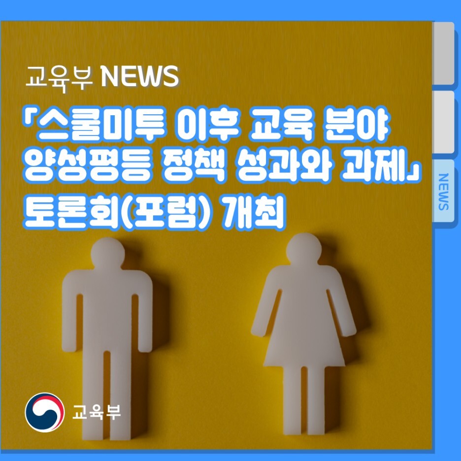 교육부(부총리 겸 교육부장관 유은혜)는 「스쿨미투 이후 교육분야 양성평등 정책 성과와 과제」토론회(포럼, 이하 토론회)를 2월 25일(금)에 개최한다.