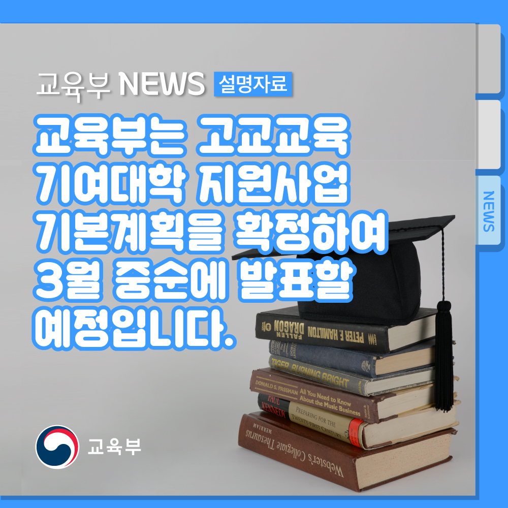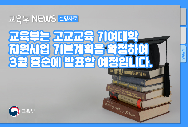 교육부는 고교교육 기여대학 지원사업 기본계획을 확정하여 3월 중순에 발표할 예정입니다. 본문