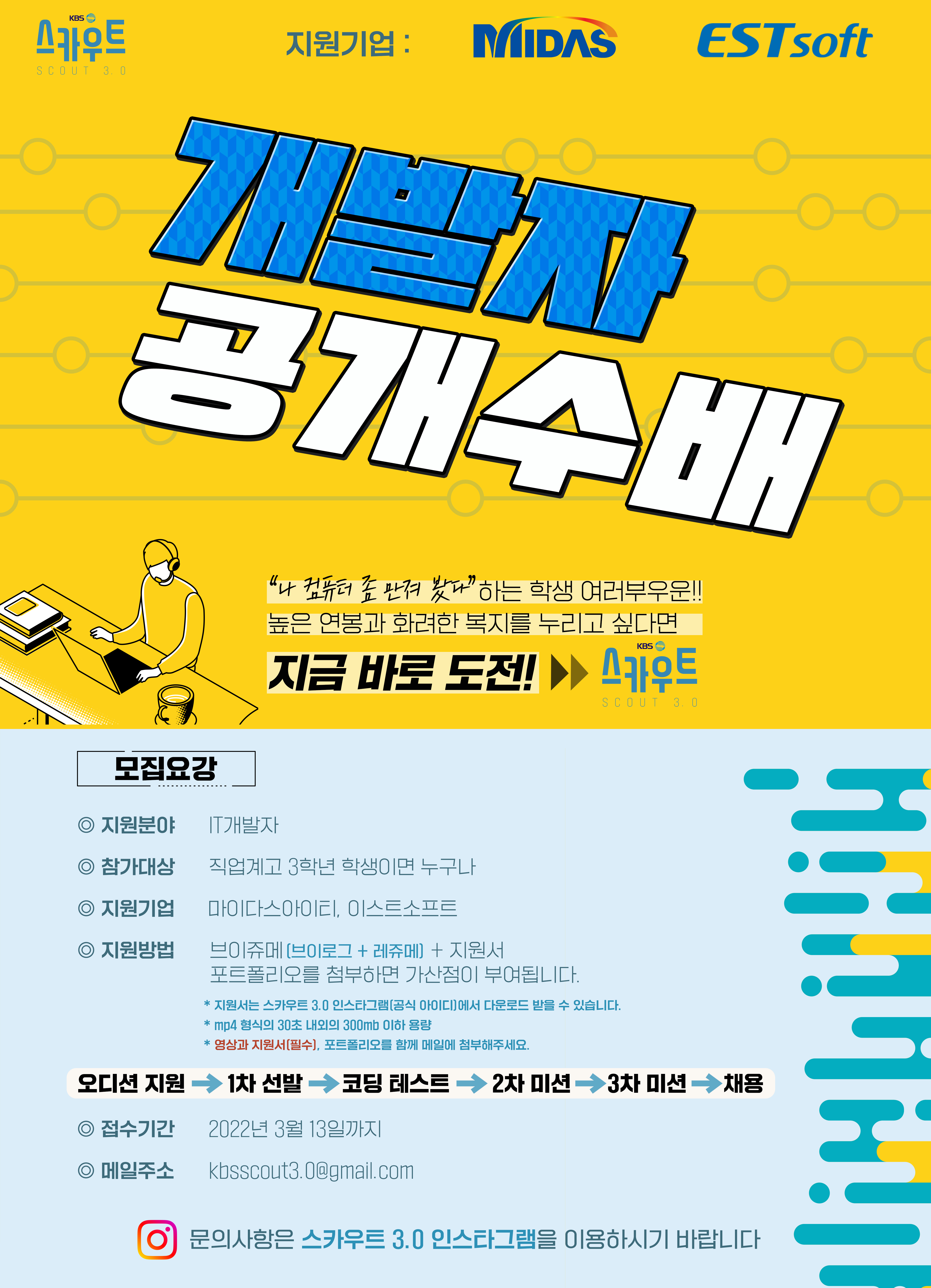 청소년들의 미래를 응원합니다. 스카우트 3.0 참여학생 모집 (~3/13) 본문