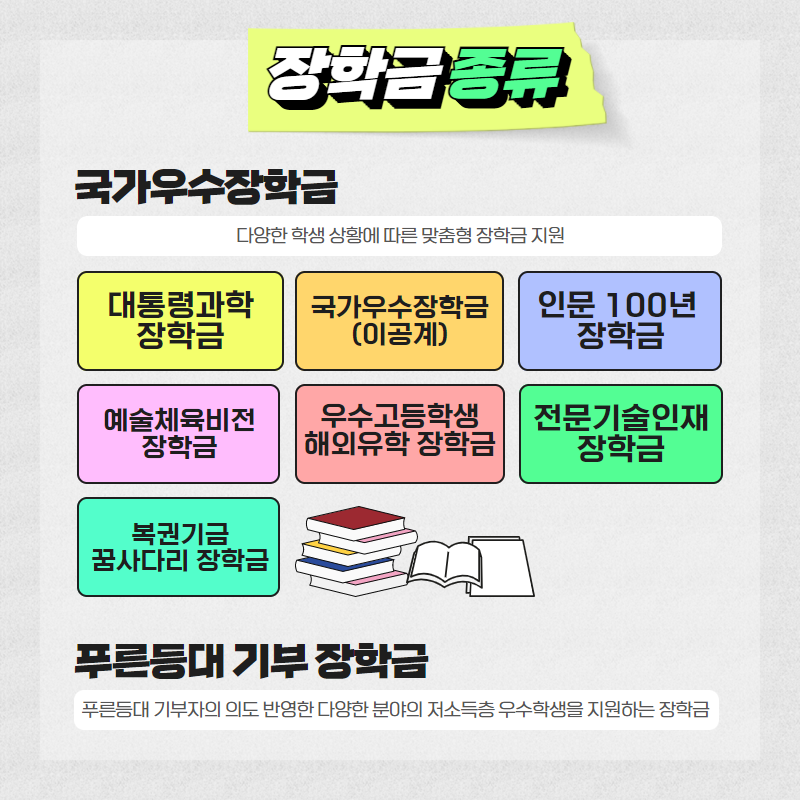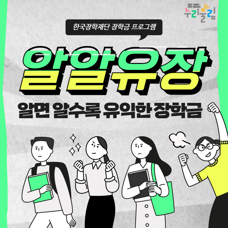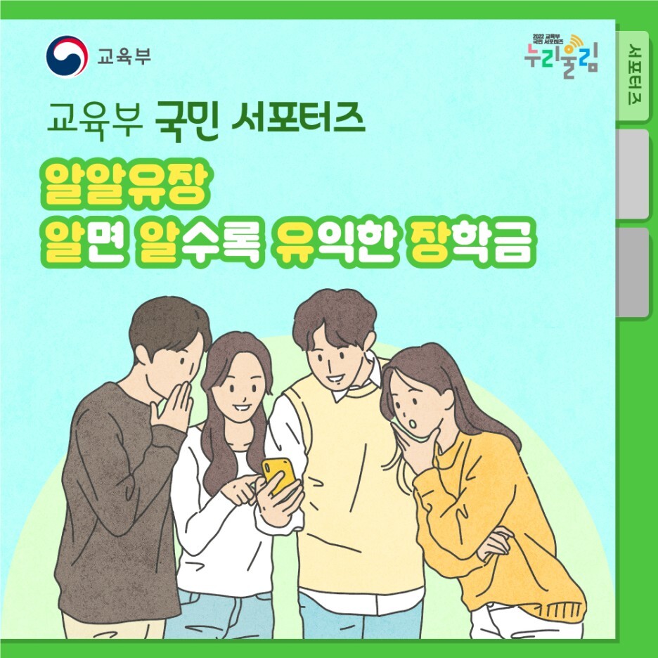 교육부와 한국장학재단의 블로그, SNS에서 장학금 소식도 전하고 있으니 주목해주시면 좋겠죠? 모두 받을 수 있는 혜택을 놓치지 않고 받아볼 수 있기를 바랍니다.