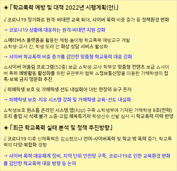 《 학교폭력 예방 및 대책 2022년 시행계획(안) 》