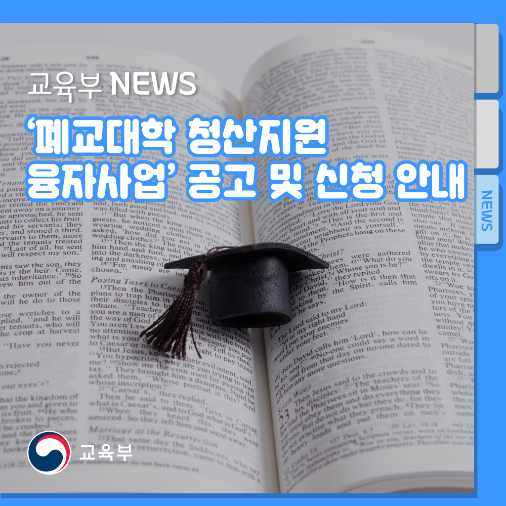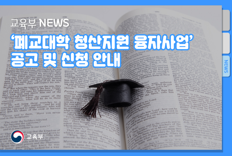 교육부(부총리 겸 교육부장관 유은혜)와 한국사학진흥재단(이사장 홍덕률)은 「2022년 폐교대학 청산지원 융자사업 지원계획」에 따라, 해산된 학교법인의 청산에 필요한 자금의 융자를 지원하기 위해 사업계획을 공고하고, 학교법인의 융자 신청을 3월 28일(월)부터 받을 예정이다.