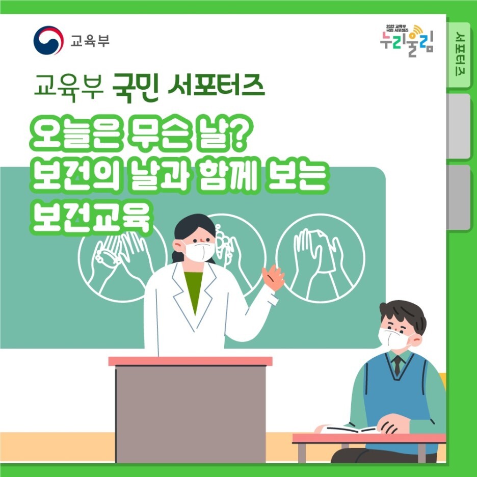 여러분은 4월 7일이 보건의 날이라는 사실, 알고 계셨나요? 코로나 이후 건강과 안전에 대한 관심은 더욱 중요하게 여겨지고 있는데요. 오늘은 보건의 날을 맞이하여, 보건 교육에 관한 내용을 간단하게 알아볼 수 있는 시간을 준비했습니다!