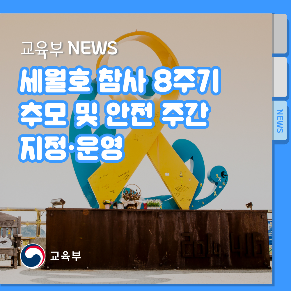 교육부(부총리 겸 교육부장관 유은혜)는 2014년 세월호 참사로 희생되신 학생, 교사 등을 추모하고 안전의식 함양과 안전문화 확산을 위해 교육청과 함께 추모 및 안전주간(4.11.~4.16.)을 지정하고 운영할 계획이다.