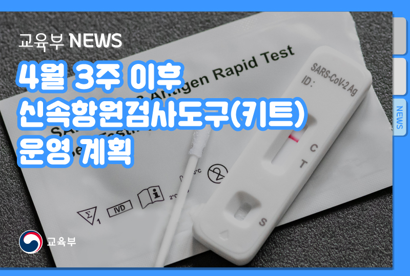 교육부(부총리 겸 교육부장관 유은혜)는 4월 3주(4.18.~)부터 그동안 유‧초‧중등 학생을 대상으로 신속항원검사도구(키트)(이하 “검사도구”)를 활용하여 주 2회 실시하던 선제검사는 주 1회를 원칙으로 하되(교직원은 기존 주 1회 검사 유지), 시도교육감이 탄력적으로 운영*할 수 있도록 하고,