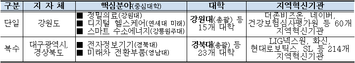 아울러 지역 주력산업의 기업혁신·산업전환 과정에서 기술·자본 등이 부족한 지역기업의 경쟁력 강화를 위해 대학-기업-지역혁신기관이 힘을 모아 애로기술 개발·제품개선 등을 지원한다.
