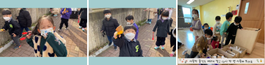 이전에 진행되었던 알뜰시장과 환경캠페인(새빛공원 줍깅)을 말씀드릴 수 있을 것 같은데요. 아이들이 더는 사용하지 않는 물건들도 다시 사용해보고, 공원의 쓰레기를 줍는 활동을 통해 문제인식에서 시작하여 계획부터 함께 생각을 나누고, 참여하여 더 의미있는 시간이었던 것 같습니다. 그리고 올해는 탄소중립 중점학교 사업을 통해 이전에 아쉬움을 느꼈던 부분인 공간혁신과 가정 및 지역사회연계를 잘 계획하고 실천하고자 합니다. 공간혁신은 목공놀이터를 계획하고 있습니다.