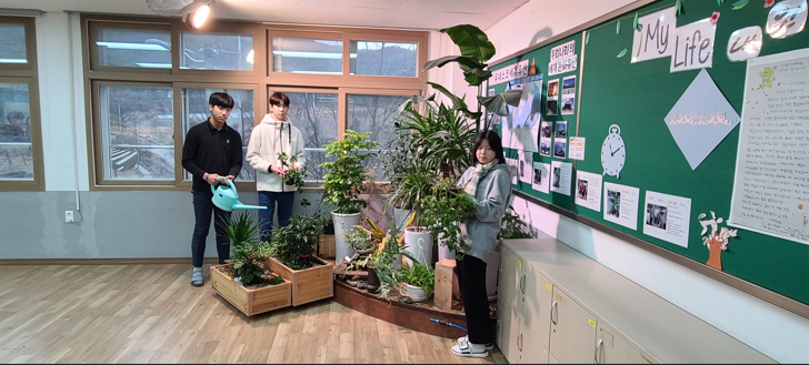 또, 교실 숲은 학생들에게 놀라운 문제해결력을 길러줍니다. 초창기에는 나무와 식물들의 성장 상태가 매우 좋지 않았습니다. 학생들은 교실 숲을 살리기 위해 연구에 매진하였으며, 일조량 때문임을 알아내고, 인공 태양이라는 문제 해결책을 도출하였습니다. 인공 태양 설치 후 교실 숲에 식재된 식물들의 성장 상태는 훨씬 좋아졌습니다.