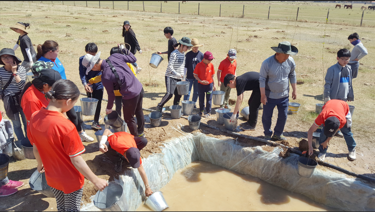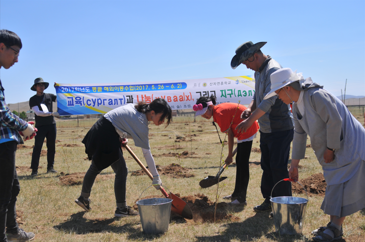 학생들은 2016년부터 사막화가 급속도로 진행되고 있는 몽골 아르갈란트 솜(우리나라의 읍 단위 행정 구역)에서 직접 사막화 방지 숲을 조성하고 있습니다. 지금까지 학생들은 2,750그루의 나무를 심었습니다. 그중 2019년까지 몽골 현지에서 직접 심은 나무는 약 1,800그루입니다.