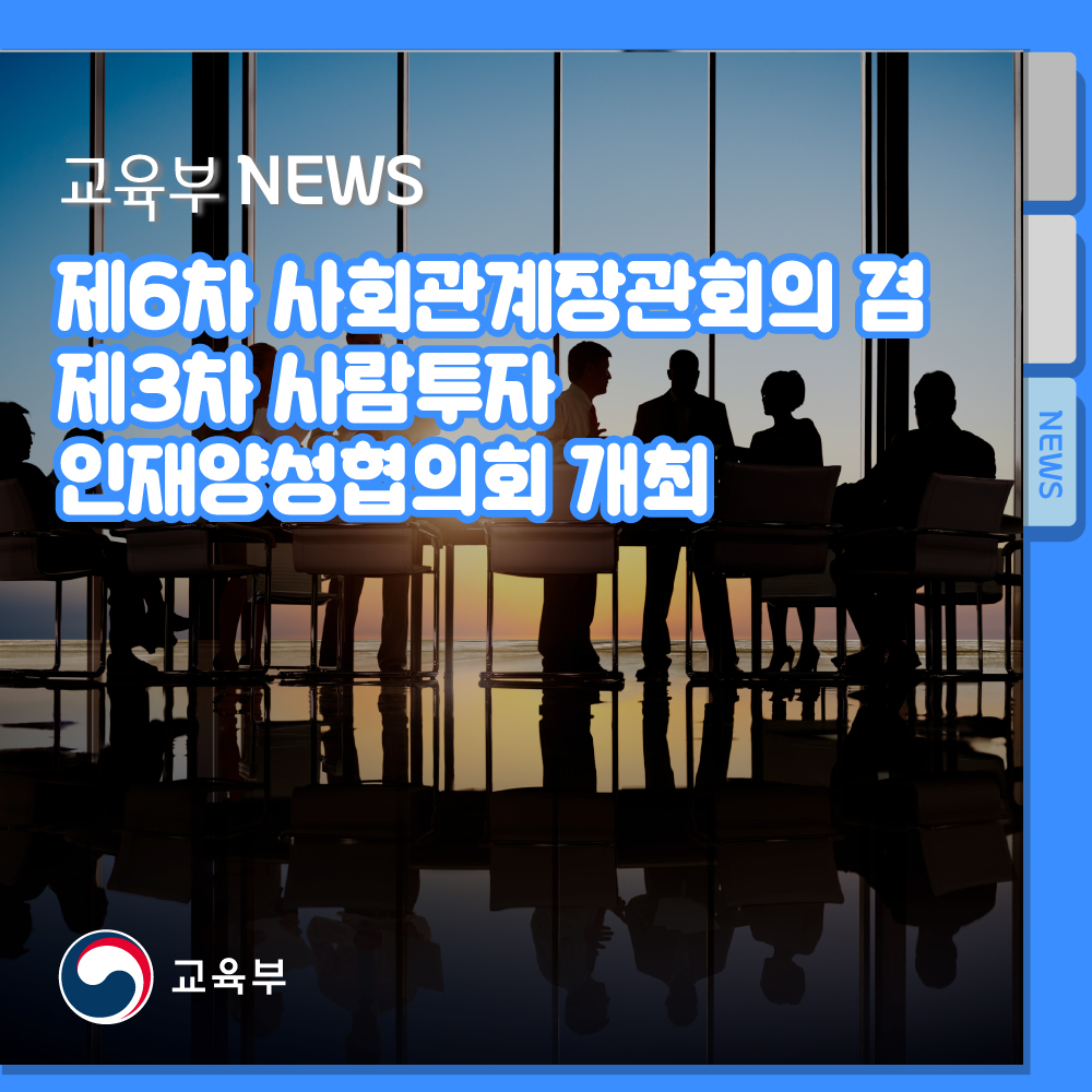 교육부(부총리 겸 교육부장관 유은혜)는 4월 27일(수) 정부세종청사에서 제6차 사회관계장관회의 겸 제3차 사람투자인재양성협의회를 개최한다.