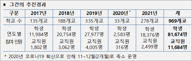 한편, 올해 참여 학교 수 420개교이며, 지난해 대비 142개교가 증가하였다.