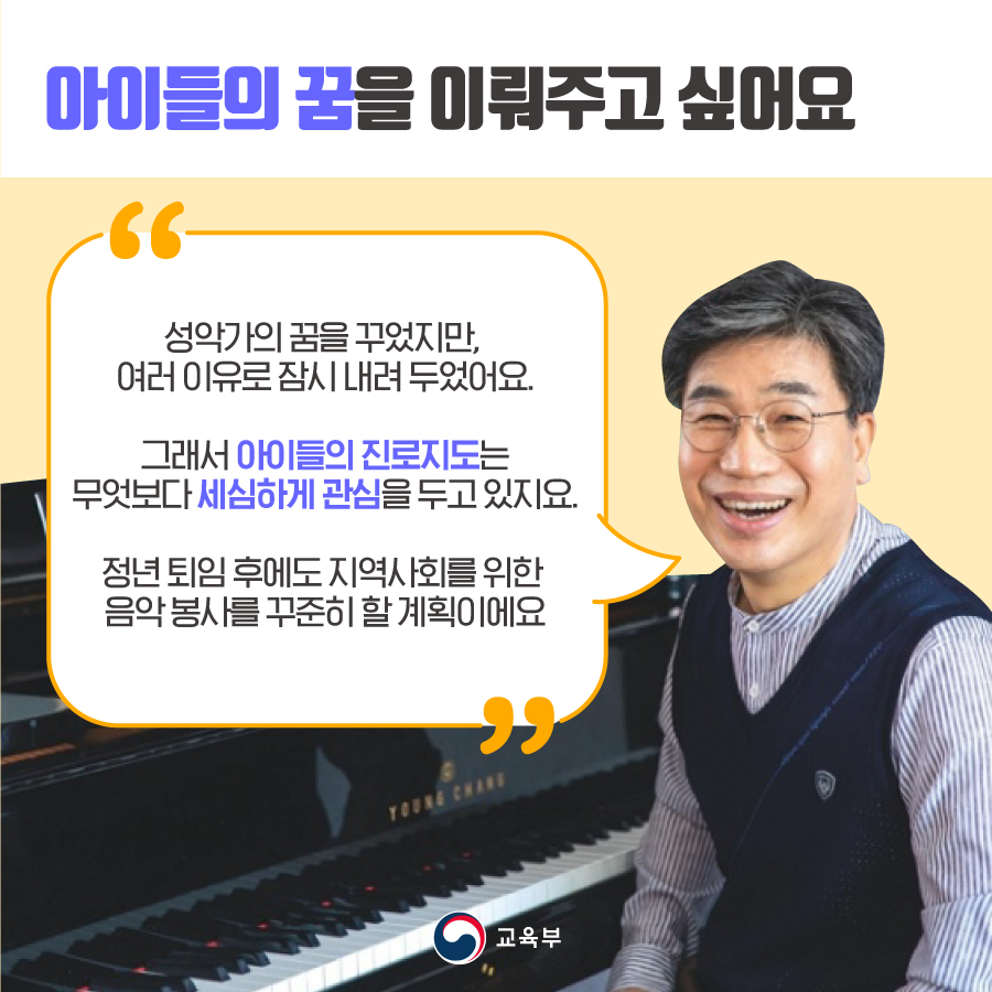 아이들의 진로지도는 무엇보다 세심하게 관심을 두신다는