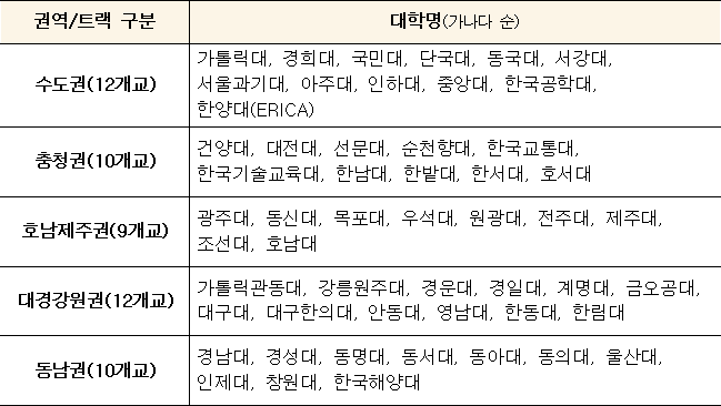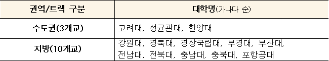 | 사업 유형별 선정대학 |