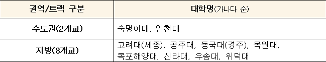 교육부와 한국연구재단은 지난 1월 13일(목) 기본계획 발표 및 사업 공고 이후, 3월 3일(목)까지 사업계획서를 접수* 받았으며, 이에 대한 서면 및 발표 평가를 거쳐 사업 수행대학을 최종 선정하였다.