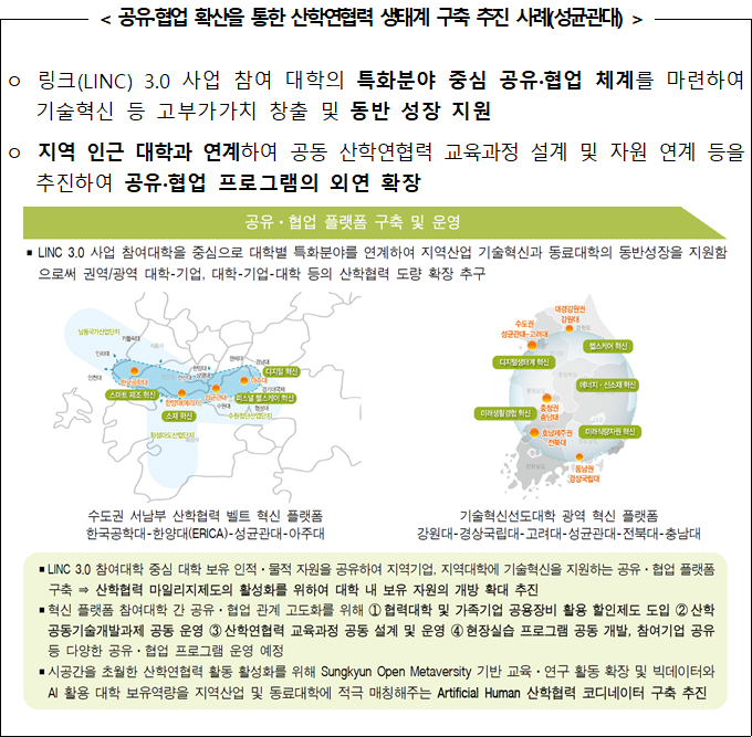□ 공유․협업 체계를 강화하여 지속가능한 산학연협력 혁신 생태계 구축 추진