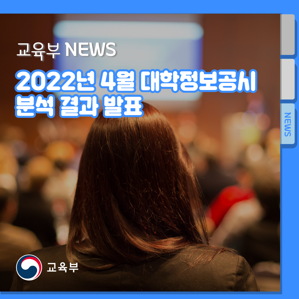 교육부(부총리 겸 교육부장관 유은혜)와 한국대학교육협의회(회장 홍원화)는 4월 29일(금), 「2022년 4월 대학정보공시 분석 결과」를 발표했다.