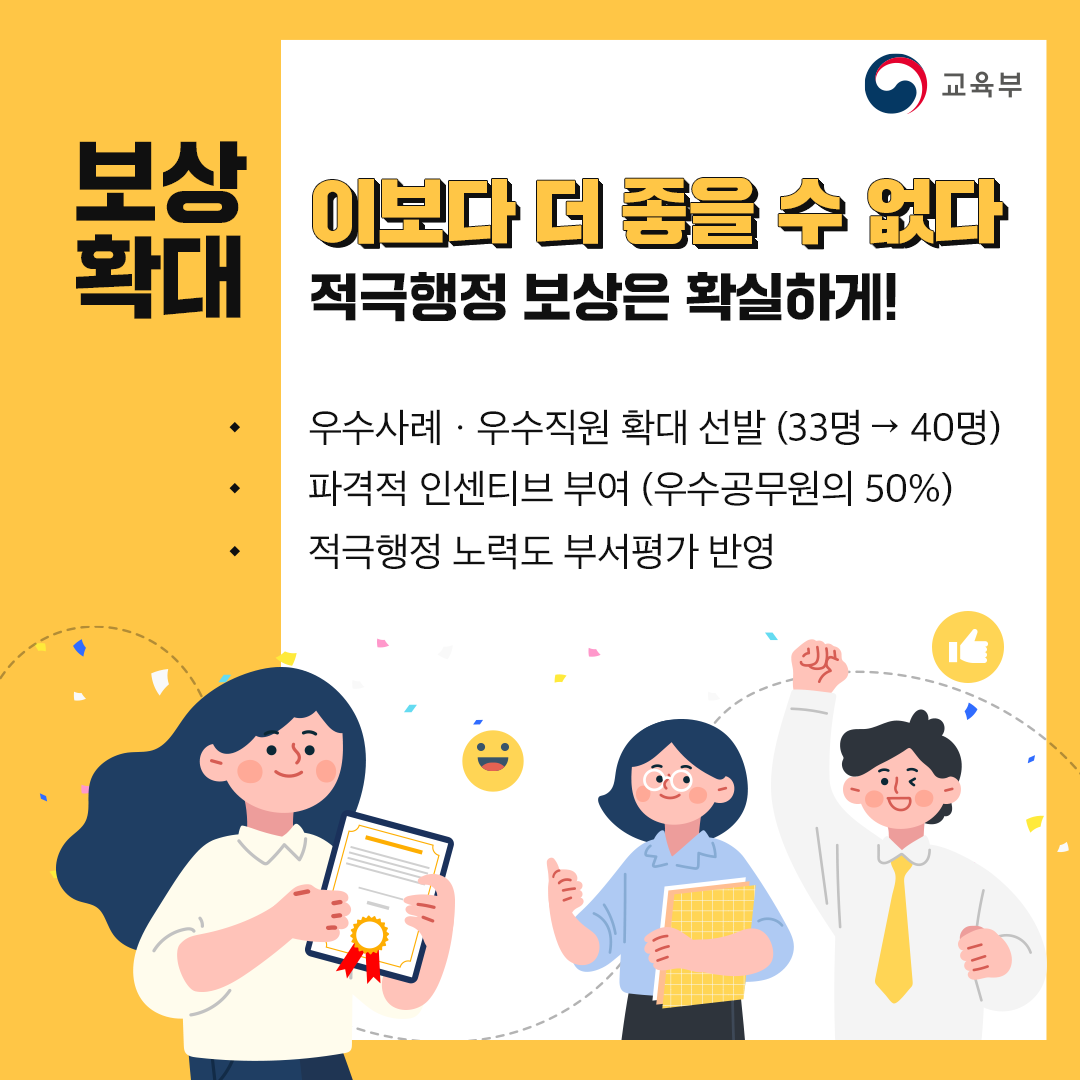 ✓보상확대 : 적극행정 보상은 확실하게!