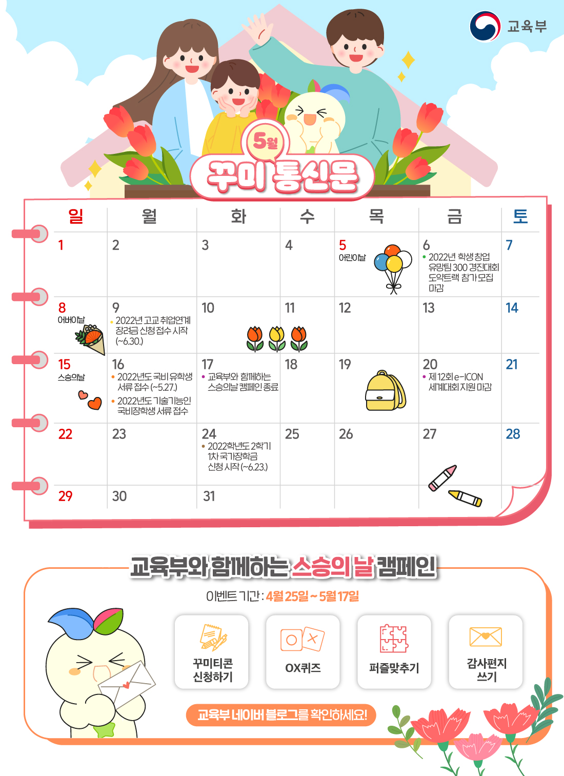 #교육부 #5월 #어린이날 #어버이날 #스승의날 #학생창업 #국비유학생 #국가장학금