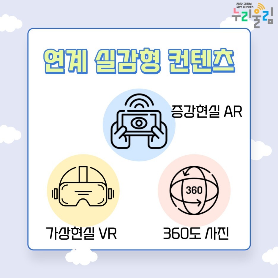 또, 4차 산업혁명의 발전과 더불어 더욱 입체적이고 생생한 시청각 효과 기술을 제공합니다. 증강현실(AR), 가상현실(VR), 360° 사진 및 영상을 통해 직접 체험하기 힘든 상황을 현실처럼 재현해 준다고 해요! 게다가 연계 실감형 콘텐츠 307종을 서비스 제공한다고 하니, 수업의 이해도가 크게 상승할 것 같아요. 저는 학생 때 과학을 매우 어려워했었는데요. 디지털교과서의 시청각 자료가 있었다면 어렵게 느꼈던 과학에 재미를 느낄 수 있지 않았을까요?