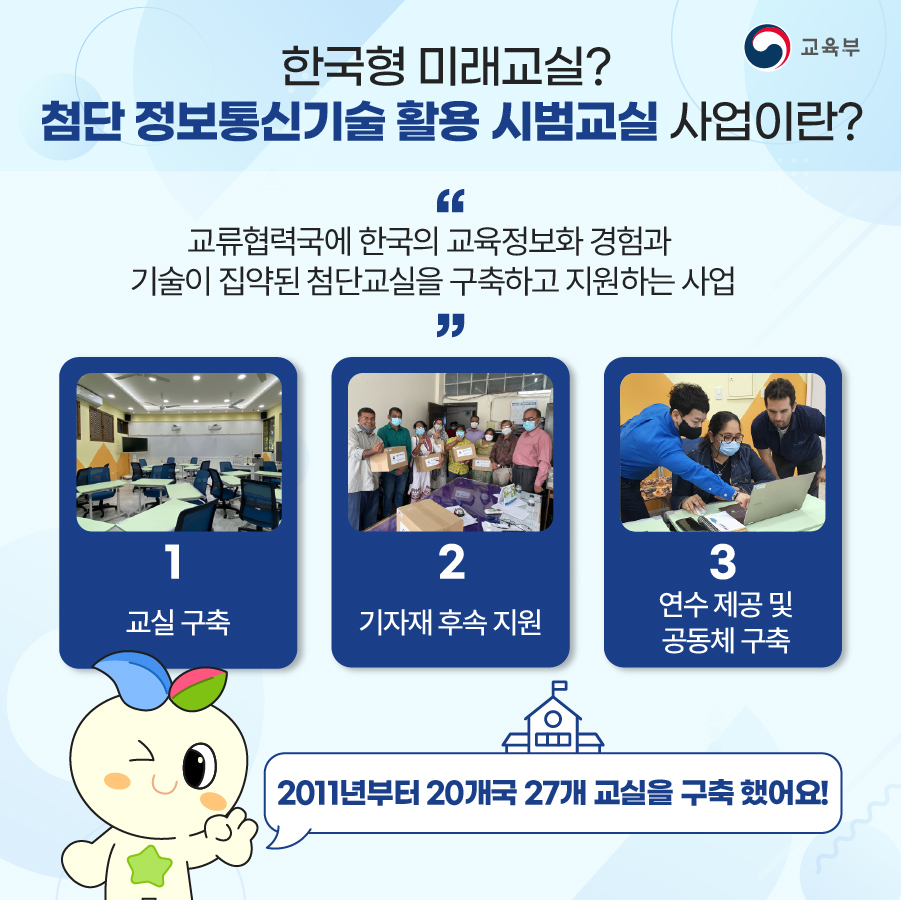 2011년부터 20개국에 한국형 미래교실 27개가 구축되었는데요,