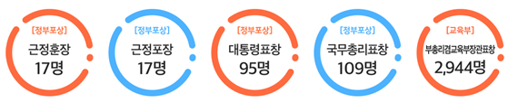 * 정부포상(훈·포장 34명, 대통령표창 95명, 국무총리표창 109명), 부총리 겸 교육부장관표창 2,944명 (붙임1. 우수 사례집, 붙임2. 수상자 명단)