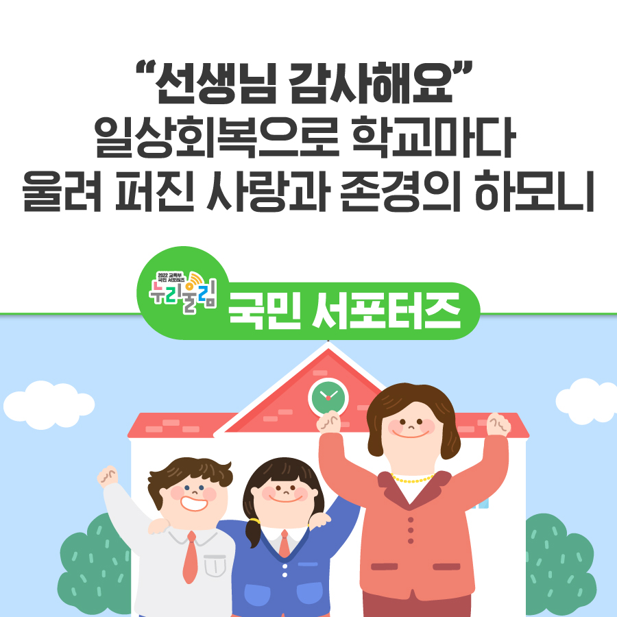 이 밖에도 ‘스승의 날 캠페인 (2022.04.25. ~ 2022.05.17.)’을 통해 교사와 학생이 모두 행복한 교육공동체 회복을 위한 의미 있는 캠페인도 진행하고 있습니다.