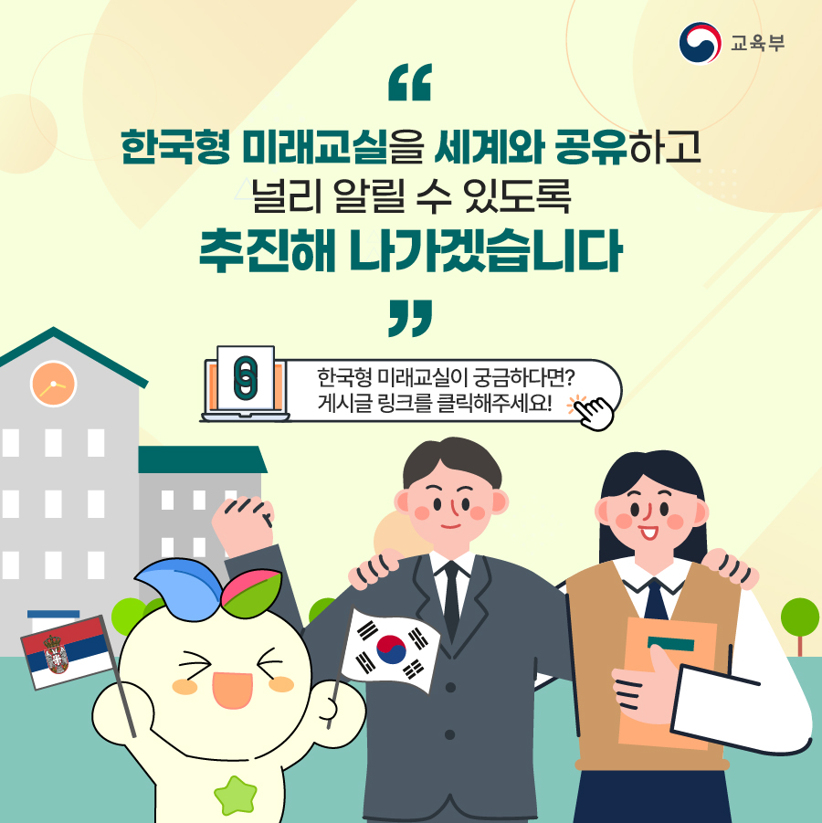#교육부 #미래교실 #한국형미래교실 #세르비아 #교실 #시범교실 #첨단교실 #미래인재육성 #학생 #교육정보화 #창의력 #국제교류학습능력 #온라인연수 #화상교류