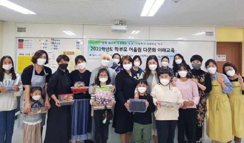 다문화교육 정책학교인 울산 농소초등학교는 지난해 ‘학부모 어울림 다문화 이해 교육’을 통해 재학생 학부모들의 다문화 교육 이해를 높이고, 학부모 간 상호 교류의 장을 만들었습니다. 해당 프로그램을 통해 전문가가 알려주는 다문화 교육 현황과 함께 음식과 문화 체험들을 통해 아이 부모 모두가 여러 문화들을 경험할 수 있는 시간을 가졌습니다.