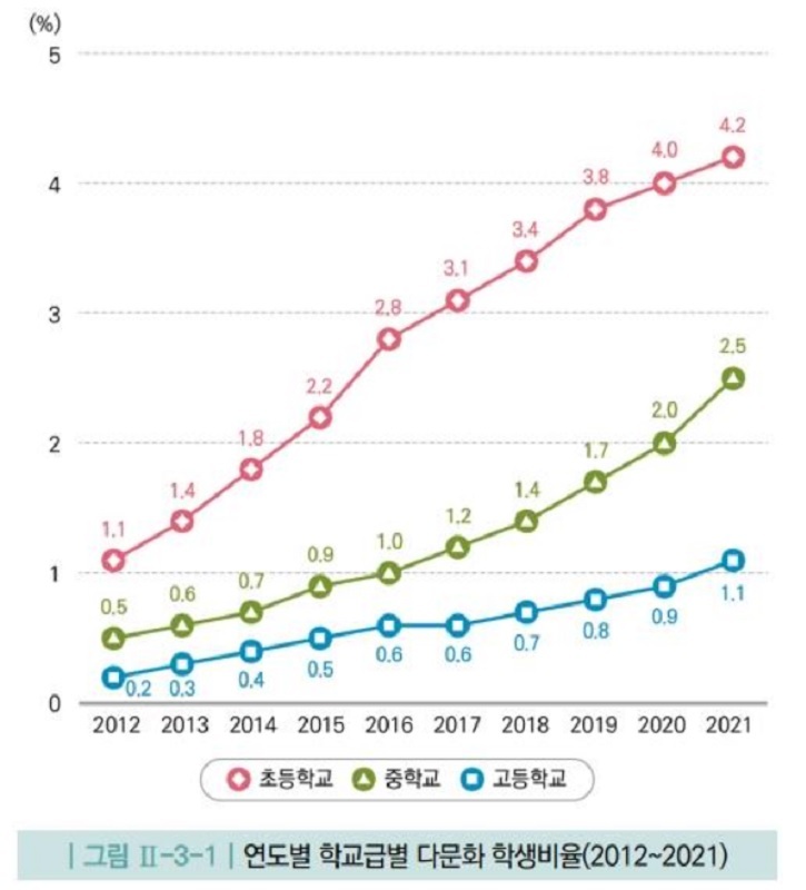다문화 학생들의 수가 늘어남과 함께 우리나라 사회에서 다문화 학생들을 바라보는 시선과 분위기가 조금씩 변화하고 있다는 방증인 셈입니다. 서로의 문화를 존중하고 올바르게 알아가는 것. 이와 관련된 교육이 잘 이뤄져 함께 어우러져 살아가는 하나의 사회로 발전하길 바라봅니다.