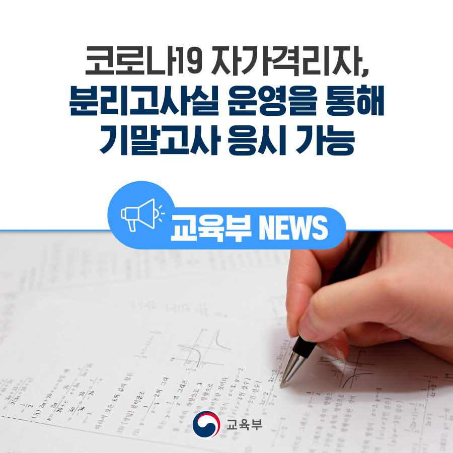 코로나19 확진・의심증상 학생*은 원칙적으로 등교가 중지되지만, 이번 조치로 각 학교에서는 분리고사실을 운영함으로써 등교하여 시험 응시가 가능하다.