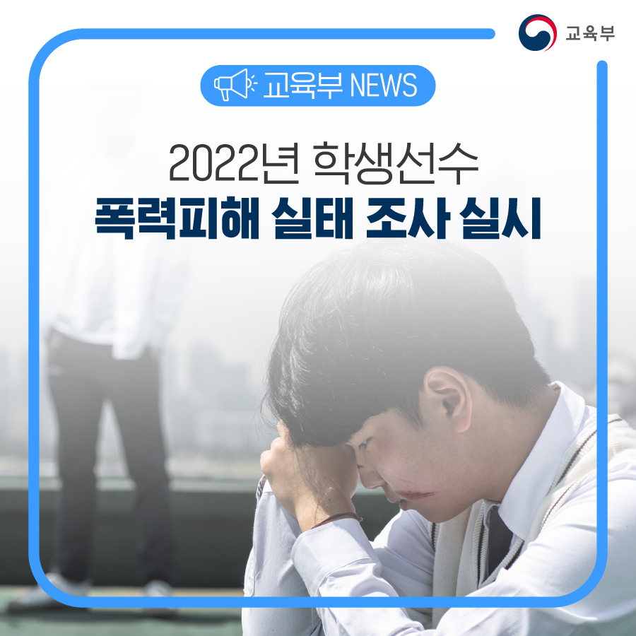 교육부는 17개 시도교육청과 함께 전국 초․중․고 학생선수 약 7만 명을 대상으로 6월 13일(월)부터 7월 8일(금)까지 4주간 폭력피해 실태 조사를 한다.
