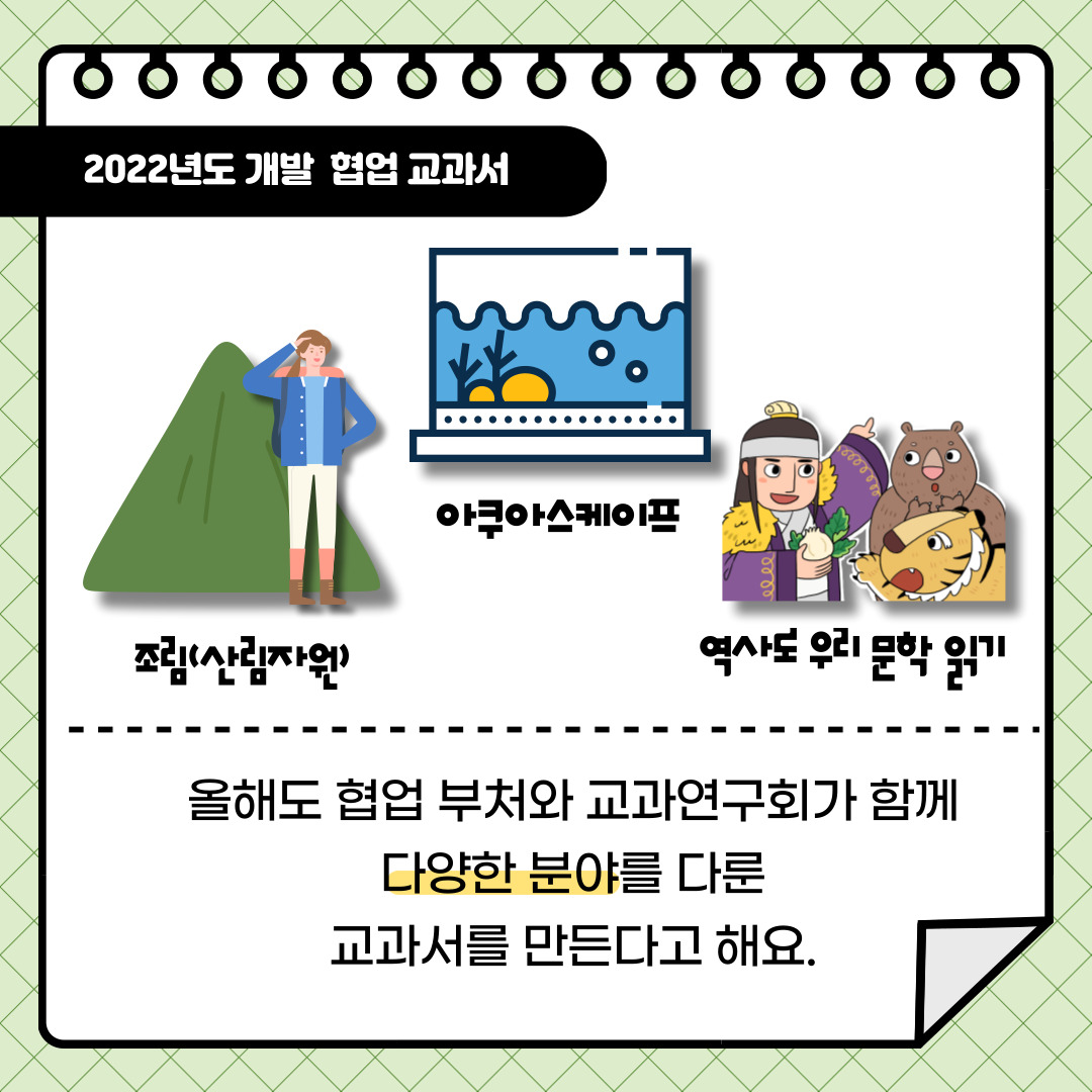 그렇다면 올해는 어떤 주제를 담은 협업 교과서들이 개발되고 있을지 알아볼까요?
