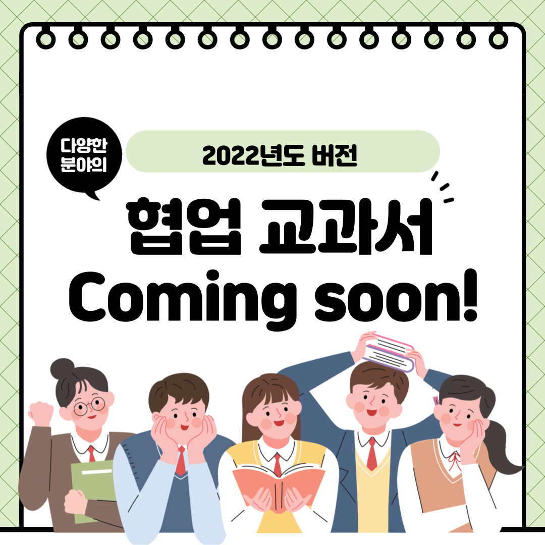 지금까지 ‘정부부처, 교과 연구회 협업 교과서’에 대해 알아보았는데요. 앞으로도 더 많은 분야의 교과서가 개발되고, 또 많은 학교에 보급되어 학생들이 협업 교과서를 통해 전문 역량을 효과적으로 기를 수 있으면 좋겠네요!그리고 이러한 교과서를 학교 현장에서 누가, 어떤 방법으로 가르쳐야 할지에 대한 연구도 계속해서 이뤄질 필요가 있을 것 같아요! 앞으로도 학생들의 미래를 위해 발전될 협업 교과서를 기대해주세요!