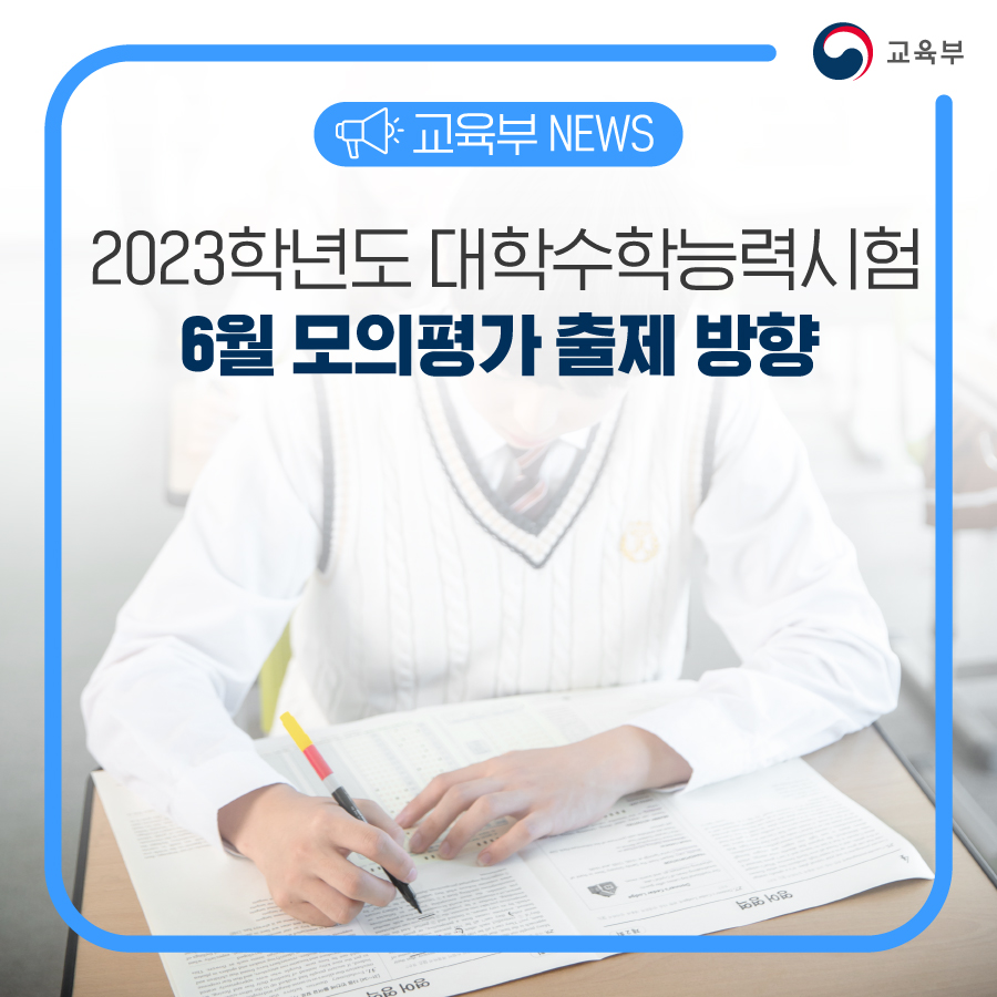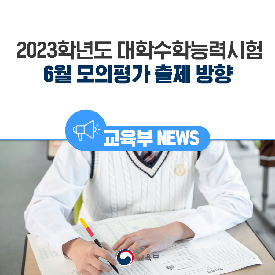 한국교육과정평가원(원장 이규민)은 2023학년도 대학수학능력시험(이하 수능) 6 월 모의평가를 6월 9일(목), 오전 8시 40분부터 전국 2,092개 고등학교(교육청 포함)와 451개 지정학원에서 동시에 실시하였다.