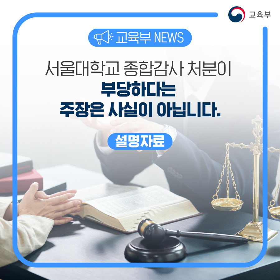 서울대학교 종합감사 처분이 부당하다는 주장은 사실이 아닙니다. 본문