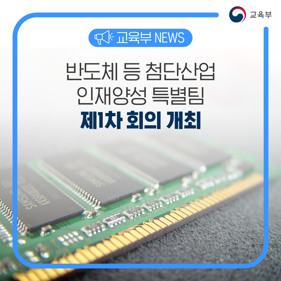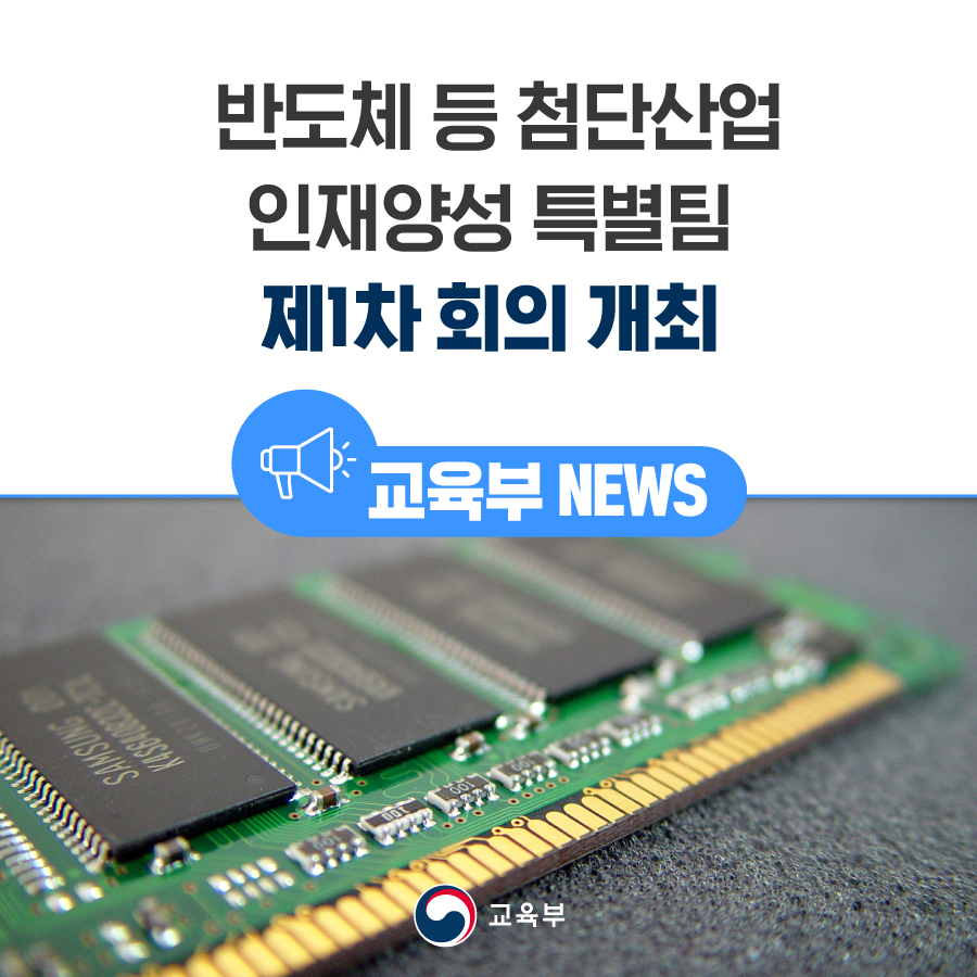 교육부는 6월 15일(수), ‘반도체 등 첨단산업 인재양성 특별팀(팀장 장상윤교육부차관)’첫 회의를 개최한다.