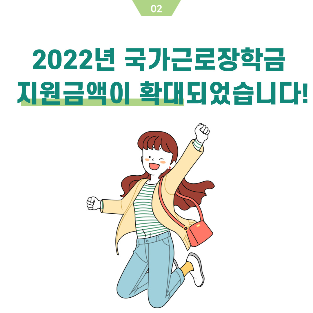 올해 국가근로장학금 지원금액이 확대되었습니다!