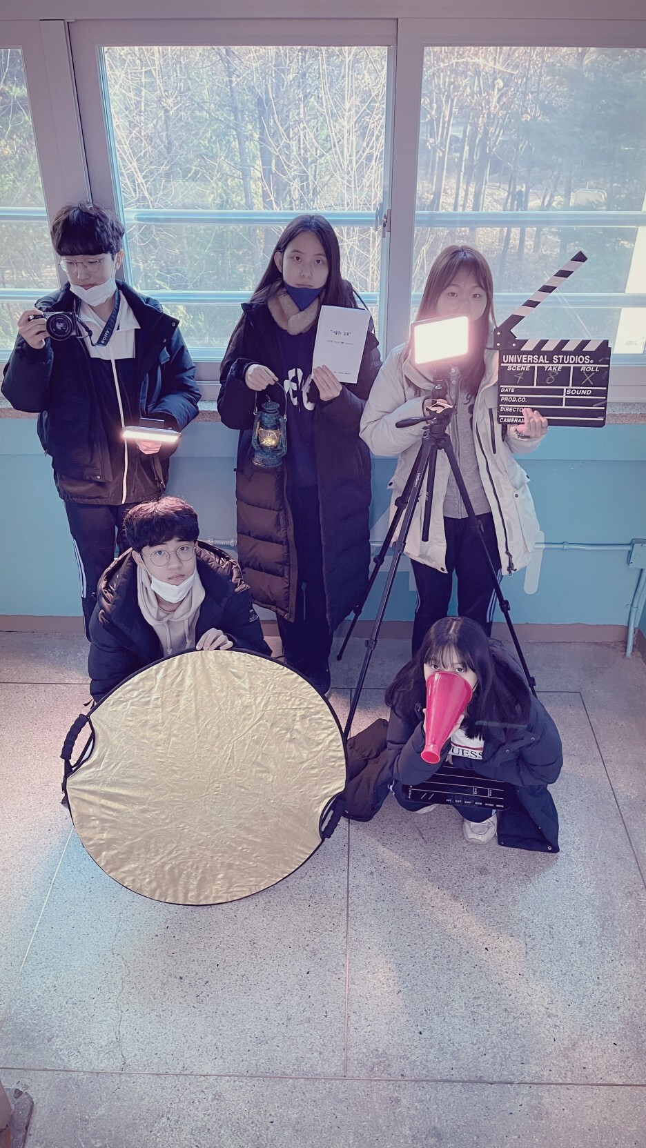 슬레이트를 든 모습이 제법 영화감독 같아 보입니다. 잠신중학교 복도 한쪽에는 이 학교의 영화동아리인 백만 볼트 학생들이 모여 영화를 제작하고 있습니다. 학생들은 직접 시나리오를 쓰고, 오디션부터 제작팀 구성까지 자기 주도적으로 예술 활동에 참여하고 있습니다.