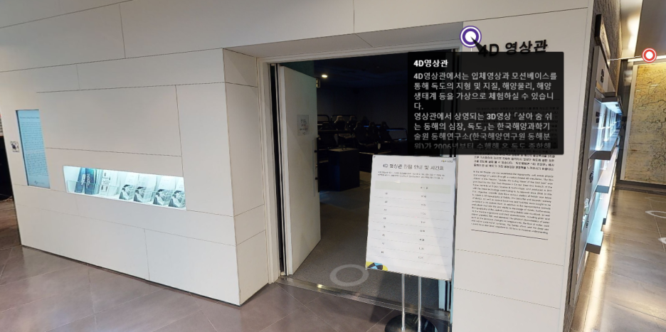 역사관 안쪽과 바깥쪽에는 각각 영상을 시청할 수 있는 공간도 마련되어 있습니다. ‘왜 독도라는 명칭을 가지게 되었는지’ 유래를 알려주는 다큐 영상을 관람할 수 있는 공간도 있었고, 4D 영상관으로 입체적인 영상을 관찰할 수 있는 시설도 있었습니다. 다만, 개인용 컴퓨터로는 4D 영상관의 내부만 확인할 수 있고, 실제 상영되는 영상을 감상할 수 없어 아쉬움이 남았습니다.