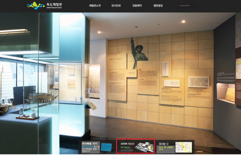 이번에 개관한 사이버독도체험관은 가상현실(VR)과 같은 최신 기법을 활용하여 온라인상에서도 생생한 체험이 가능한 실감 나는 전시관을 구현했습니다. 특히 전시물들을 관람하는 데에 있어 불편함이 없도록 독도에 대한 역사기록과 지도 등을 전시하는 역사관, 독도의 생태 자연환경을 안내하는 자연관 등 독도전시관 전체를 360도 가상현실 컨텐츠로 제작했다고 합니다.