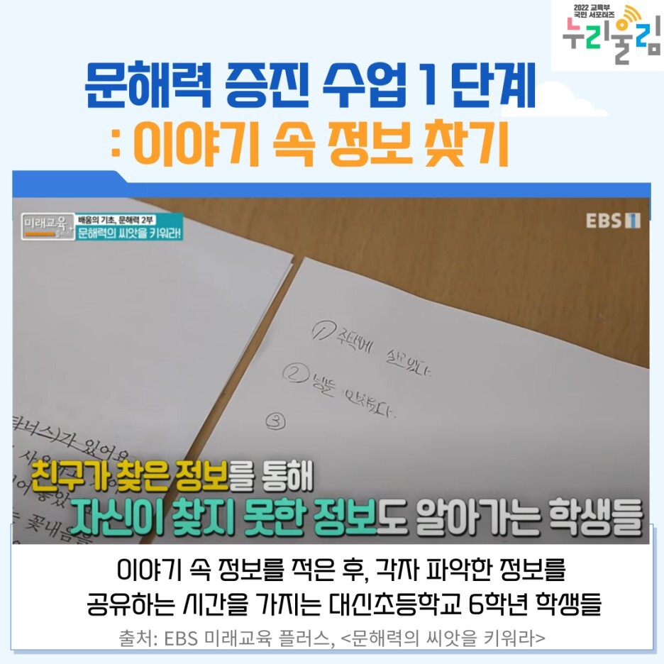최근 학교 현장에서도 아이들의 문해력을 키우기 위한 수업을 진행한다고 합니다. 과연 교육현장에서는 어떠한 방식으로 문해력 교육을 하고 있을지 함께 살펴볼까요?