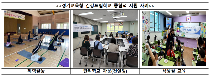 * 서울학생 체력회복 ‘힘힘힘’ 프로젝트(서울교육청), ‘건강드림학교’(경기교육청)