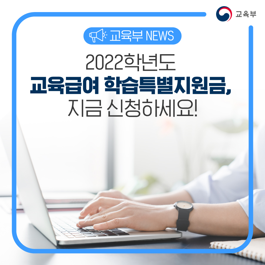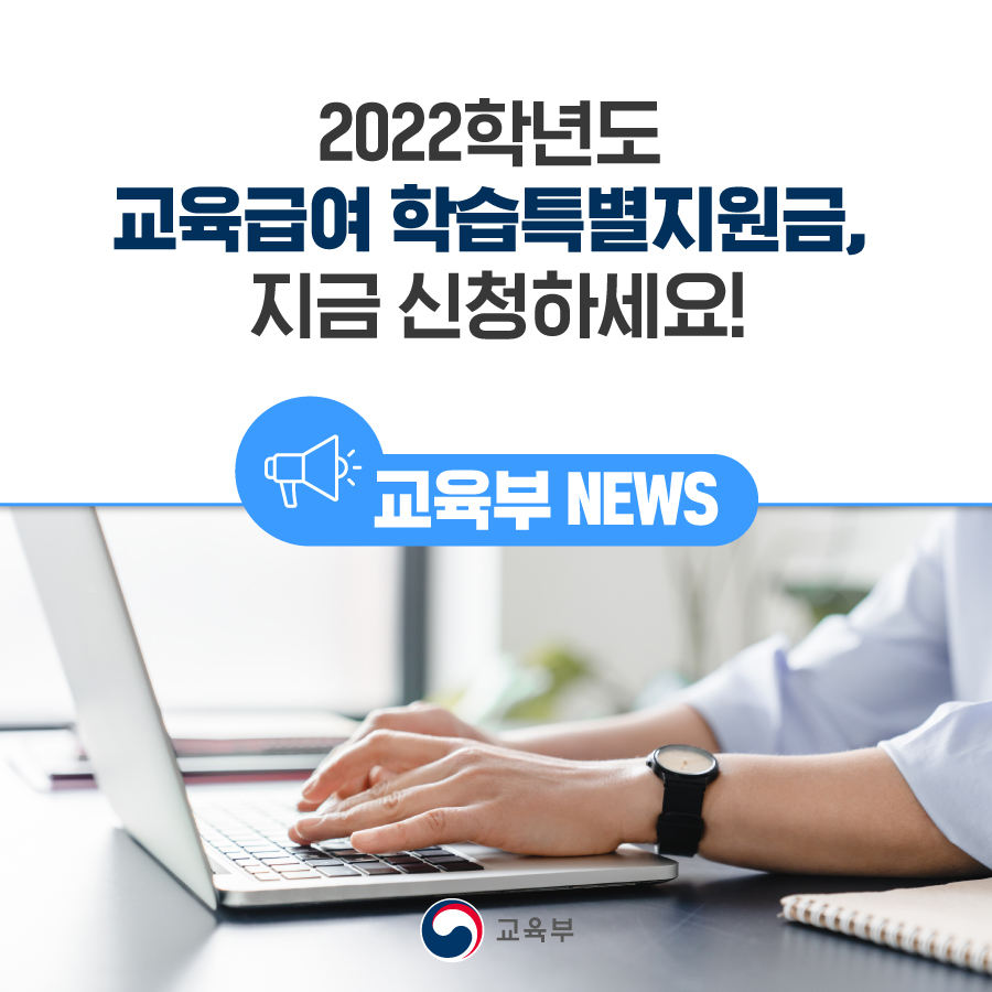 교육부와 17개 시도교육청, 한국장학재단(이사장 정대화)은 ‘2022학년도 교육급여학습특별지원금’ 신청을 6월29일(수)부터 9월30일(금)까지접수한다.