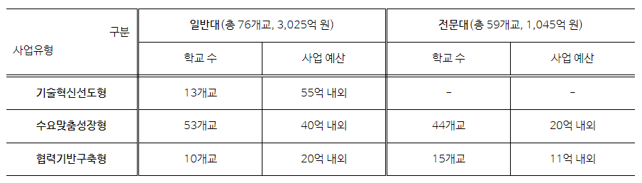 * 대학의 책무성 제고를 위해 3년 후 단계 평가를 통한 계속지원 여부 결정(기존 최대 5년 지원)